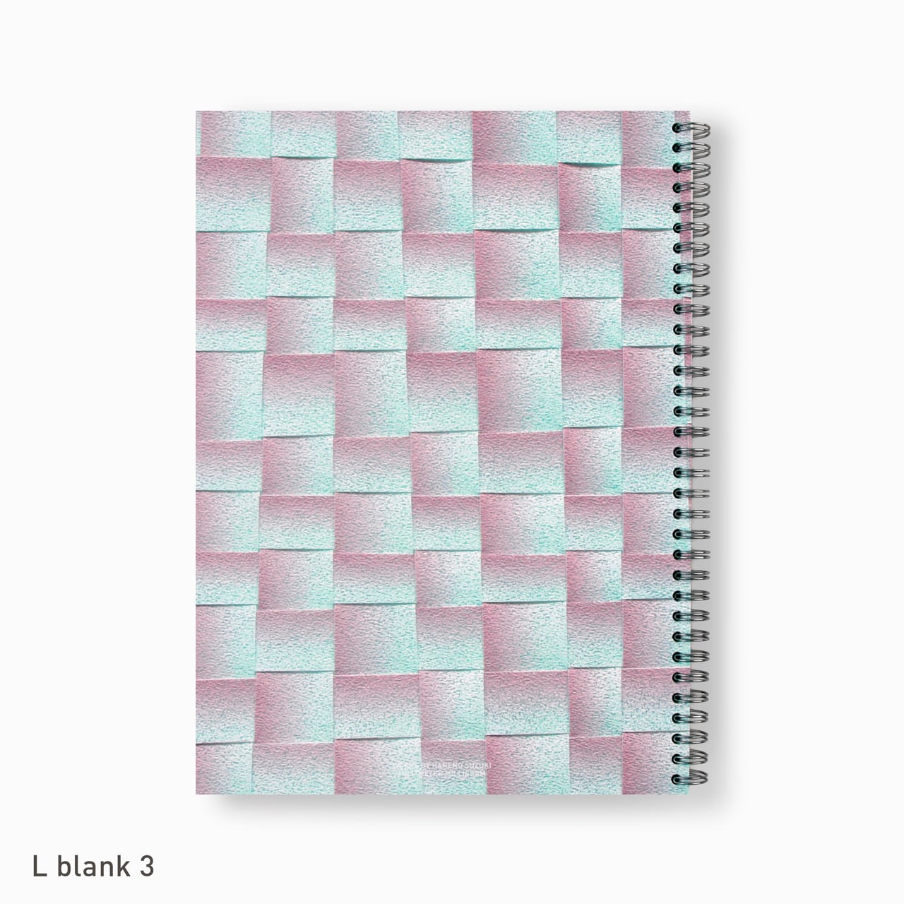 WEAVED NOTEBOOK L blankは3つのサイズオプションの中で一番大きいサイズ、中ページは無地になります。